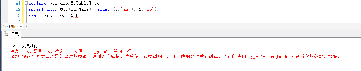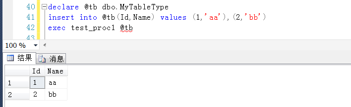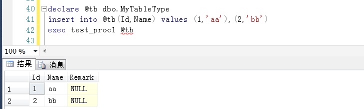 此時(shí)的存儲(chǔ)過(guò)程可以接收TableType參數(shù)并正常運(yùn)行