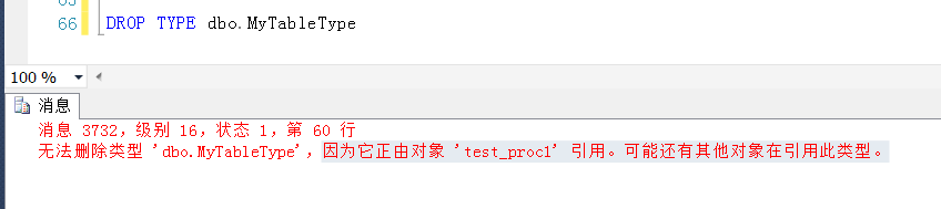 為了達(dá)到公用的目的,有時(shí)候一個(gè)TableType可以在多個(gè)地方分別被引用到,這樣的話,勢(shì)必要先刪除所有的引用了這個(gè)“用戶自定義表類型”的對(duì)象(存儲(chǔ)過(guò)程等)