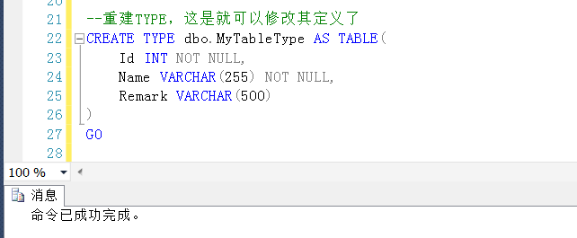 刪除原TableType之后,重建(重定義)TableType