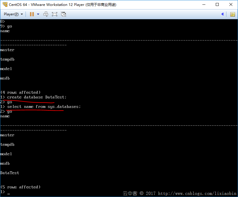 CREATE DATABASE DataTest; GO SELECT Name from sys.Databases; GO
