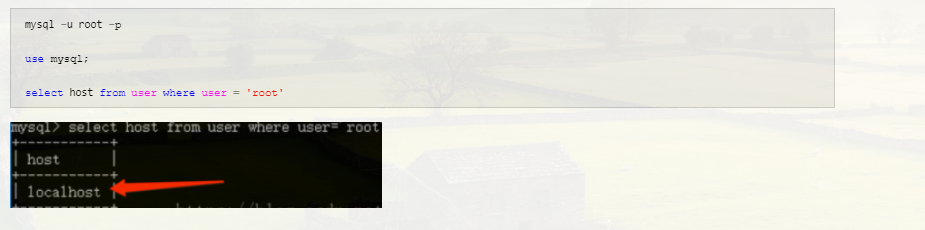 mysql -u root -p use mysql; select host from user where user = 'root'