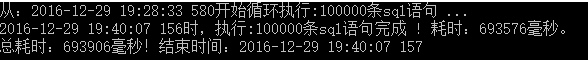 Console.WriteLine("從:" + DateTime.Now.ToString("yyyy-MM-dd HH:mm:ss fff") + "開(kāi)始循環(huán)執(zhí)行:" + cnt + "條sql語(yǔ)句 ...");