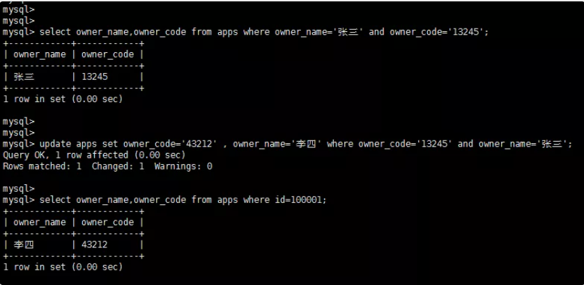 update apps set owner_code='43212' , owner_name='李四' where owner_code='13245' and owner_name='張三';
