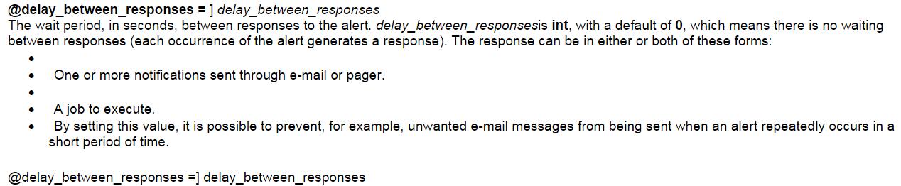 然后我嘗試用sa登錄(sa已經(jīng)被禁用)了三次,但是我只收到了一封郵件。特意查看了一下sp_add_alert的官方文檔,才知道出現(xiàn)這個原因,是因為參數(shù)@delay_between_responses的值設置緣故,通過設置該值,可以防止在在短時間內(nèi)重復發(fā)送一些不需要的電子郵件。如上所示,一分鐘內(nèi),即使錯誤日志里面出現(xiàn)了大量類似的錯誤,也只會發(fā)送一封告警郵件。其實只是為了減少發(fā)送告警的頻率,如果你想當錯誤日志里出現(xiàn)這個級別的告警時,都必須發(fā)送告警郵件,可以將其值設置為0。但是有時候,如果設置為0,你會收到鋪天蓋地的郵件。其實這個小問題,只是因為以前沒有特意留意這個參數(shù)而已。存粹屬于沒有徹底了解這些功能罷了。