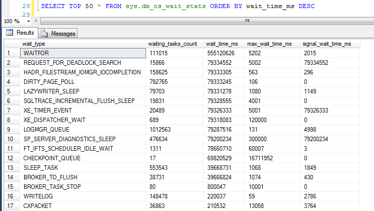 實(shí)話說(shuō),不管是sys.dm_os_wait_stats還是sys.dm_exec_requests,在正常情況下,獲取到的等待信息實(shí)用價(jià)值都是不高或者是適用場(chǎng)景有限。