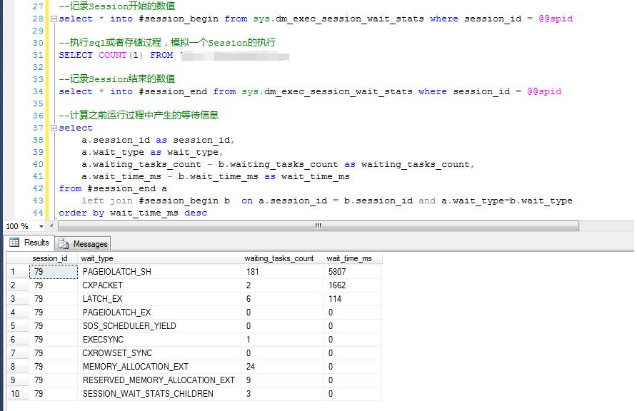 第一次運(yùn)行了SELECT COUNT(1) FROM TestCollectionSessionWaitStats