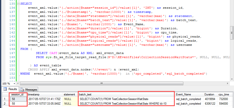 -- Parse the XML to show rpc_completed,sql_batch_completed details
