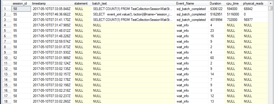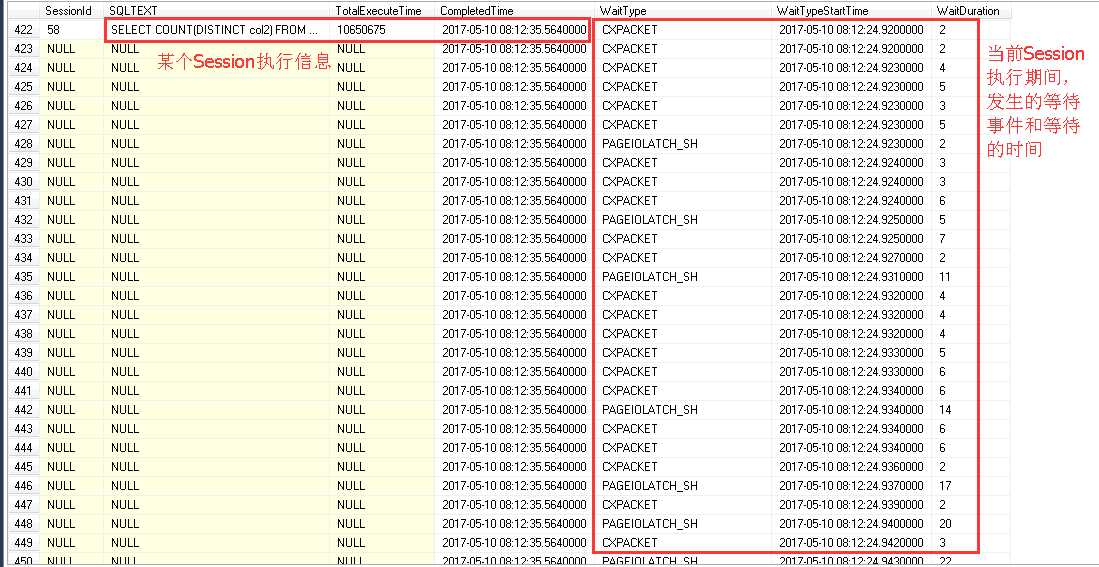 因?yàn)閿U(kuò)展事件收集到的事件信息中SQL語(yǔ)句完成事件(rpc_completed或者sql_batch_completed)與產(chǎn)生的等待之間,沒(méi)有一個(gè)直接的對(duì)應(yīng)關(guān)系。