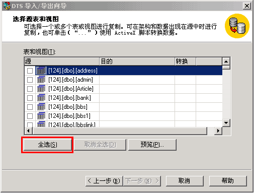 17、選擇您想要導(dǎo)入的表、視圖等數(shù)據(jù)內(nèi)容,如下圖所示: