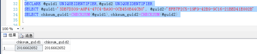 這里使用的是HASHBYTES加密函數(shù),對(duì)字符串加密,然后對(duì)加密之后的數(shù)據(jù)生成一個(gè)UNIQUEIDENTIFIER,重復(fù)的概率就小的多的多了