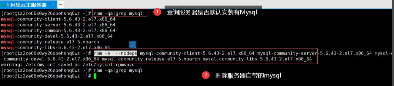 rpm -qa|grep mysql -- 查詢服務(wù)器是否有mysql,如有,則執(zhí)行下面的語句進(jìn)行刪除