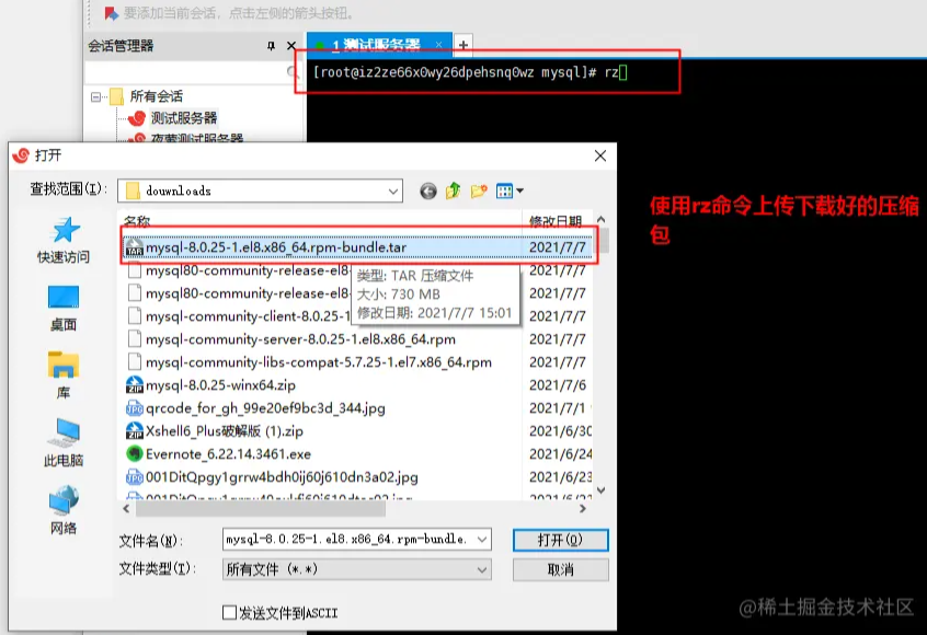 注意: 如果覺得通過rz命令上傳時間比較久,可以下載一個xftp工具,通過這個工具上傳效率更高(此篇就不展開將這個工具,如有需要,大家可以在下方留言,后續(xù)會展開一片文章具體介紹,)