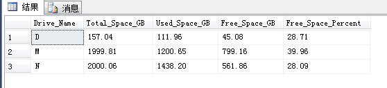xp_fixeddrives方式有點(diǎn)是系統(tǒng)自帶,可直接使用,缺點(diǎn)是不能查看磁盤(pán)總大小和不能查看SQL Server未使用到的磁盤(pán)信息