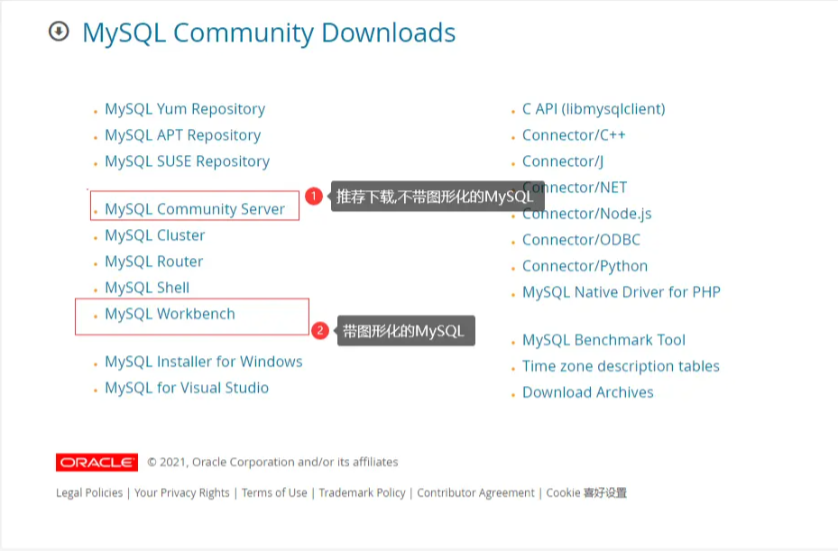 MySQL Community Server: MySQL Community (GPL)下的開源社區(qū)版本,是使用的數(shù)據(jù)庫開源版本(免費(fèi)的,盤它)。Mysql Workbench: 類似navicat是個圖形界面UI工具,可以實(shí)現(xiàn)遠(yuǎn)程Mysql數(shù)據(jù)庫訪問(一開始不建議直接使用圖形化管理工具,建議先通過命令行了解,這樣能夠更快的認(rèn)識Mysql,高手都是用命令行的(PS: 如有需要圖形化工具的可以私我))。