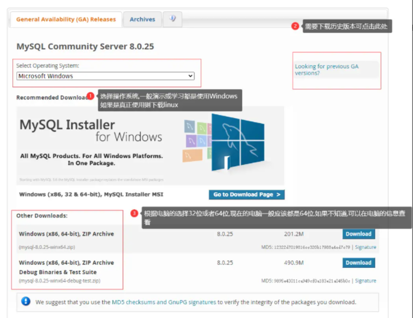 (3)下載安裝包(32位電腦下載32位的安裝包,64位電腦下載64位的安裝包)