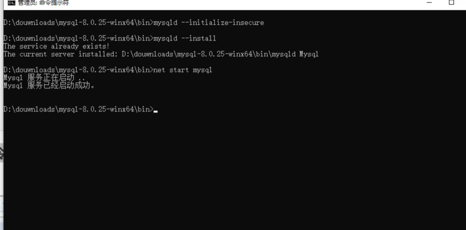 mysqld --initialize-insecure指令進(jìn)行配置,安裝路徑會默認(rèn)生成一個data文件夾,