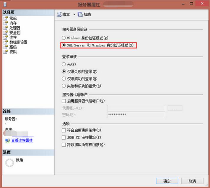 STEP 2. 選擇“安全性”,選中SQL SERVER和Windows身份驗(yàn)證模式