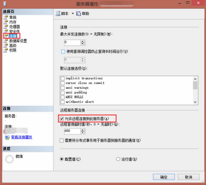 STEP 3. 再選擇“連接”,勾選“允許遠(yuǎn)程連接此服務(wù)器”,然后點(diǎn)擊“確定”按鈕。