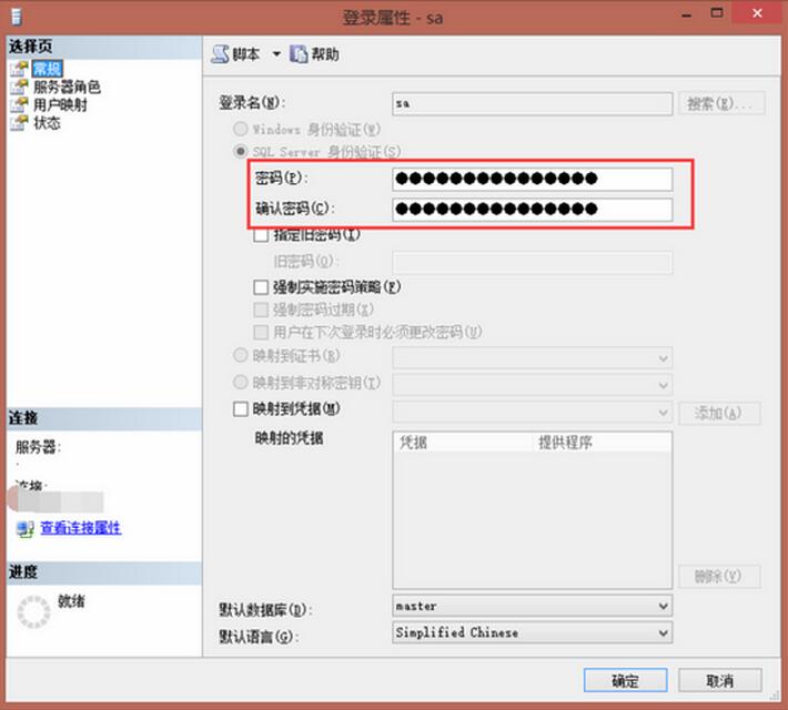 STEP 5. 在“常規(guī)”中,改好你自己的密碼,這是你sa登錄的密碼。