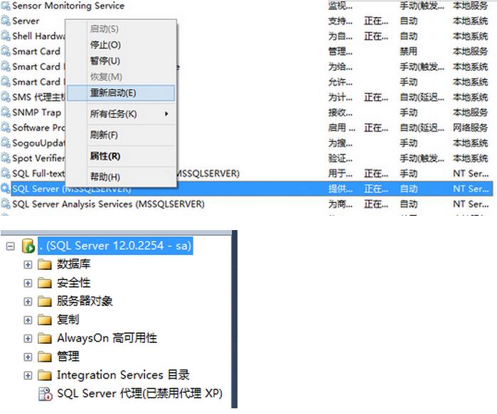 并且需要注意的是,有些地方如果沒(méi)有生效,請(qǐng)重啟一下sql server(可以從SSCM里,也可以從系統(tǒng)服務(wù)中找),下面是詳細(xì)的步驟: