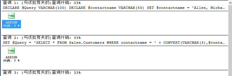 執(zhí)行查詢計劃如下,如果再一次使用不同的@contactname值,此時查詢執(zhí)行計劃將再次創(chuàng)建@contactname不會達到重用的目的