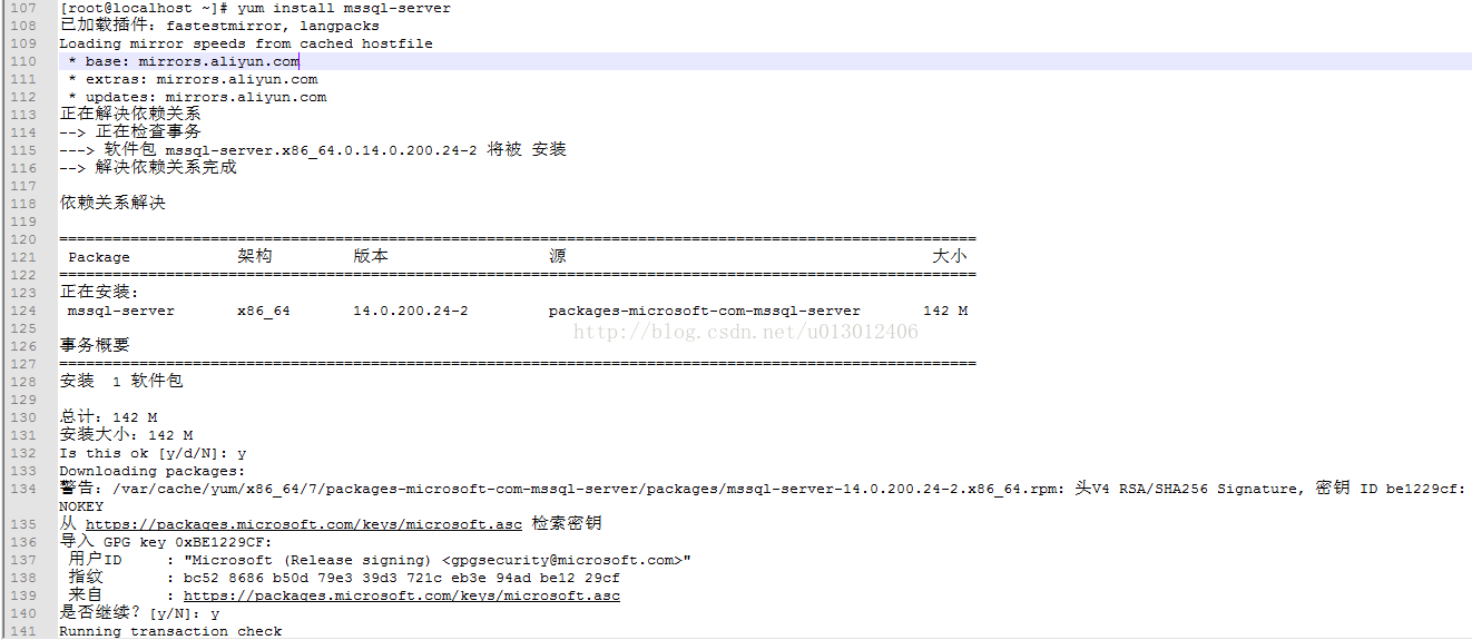 [root@localhost ~]# yum install mssql-server