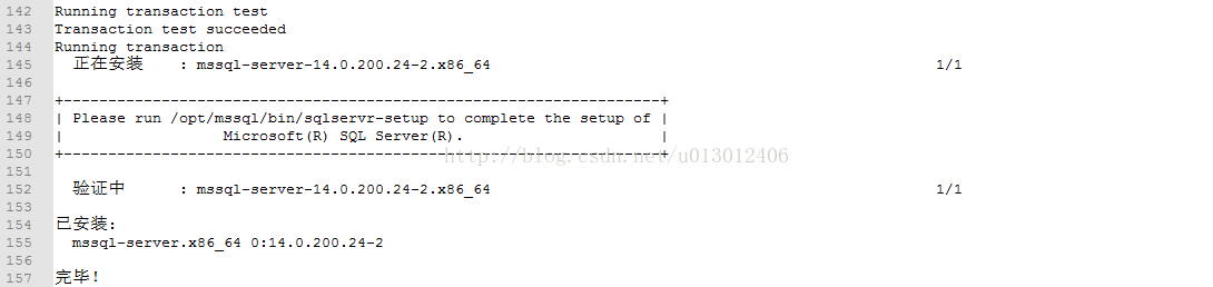 至此,SQL Server就已經(jīng)安裝好了!既然是安裝在Linux系統(tǒng)上,那么肯定需要通過命令行的模式進(jìn)行管理數(shù)據(jù)庫,Oracle有sqlplus,SQL Server有sqlcmd,但需要另外安裝。
