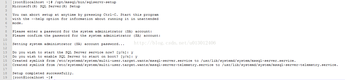 [root@localhost ~]# /opt/mssql/bin/sqlservr-setup