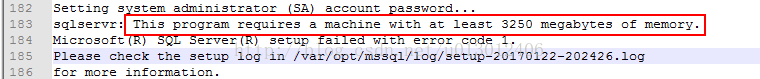 微軟官方提示,在Linux上安裝SQL Server需要至少3.25GB的內(nèi)存,否則會配置失敗。