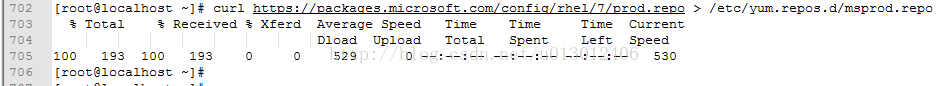 [root@localhost ~]# curl https://packages.microsoft.com/config/rhel/7/prod.repo > /etc/yum.repos.d/msprod.repo