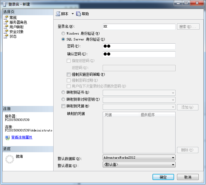 1.在主節(jié)點(diǎn)上直接添加的是“登錄名”,比如創(chuàng)建一個(gè)登錄名 KK