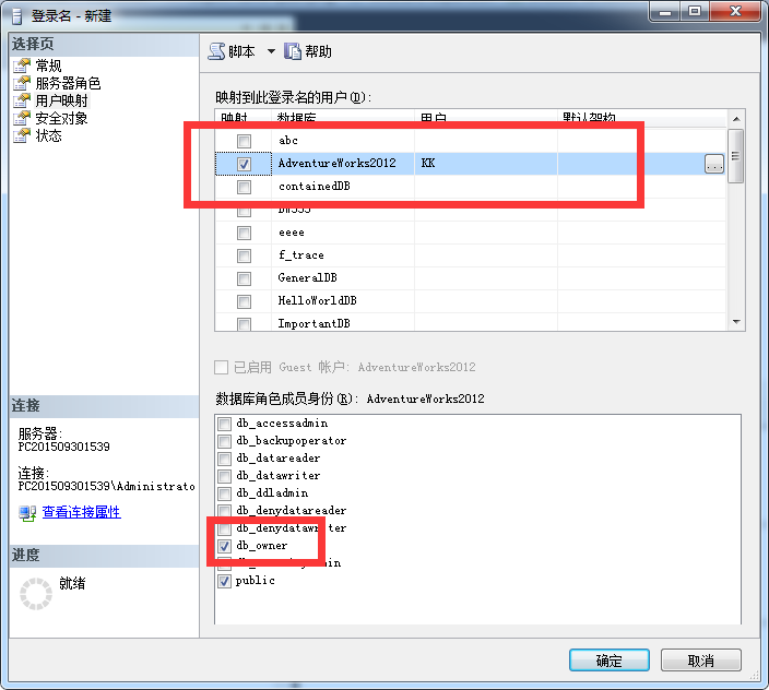 2.選擇數(shù)據(jù)庫權(quán)限及用戶映射
