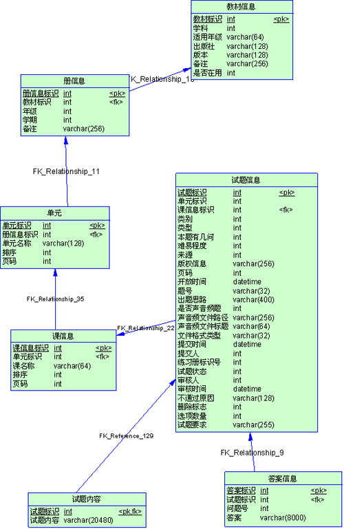 【試題內(nèi)容】、【答案信息】兩個表,最初是作為幾個字段添加到【試題信息】里的,可以看到試題內(nèi)容和答案這兩個字段很長,在表里有3萬記錄時,表已經(jīng)占 了1G的空間,在列試題列表時非常慢。經(jīng)過分析,發(fā)現(xiàn)系統(tǒng)很多時候是根據(jù)【冊】、【單元】、類型、類別、難易程度等查詢條件,分頁顯示試題詳細(xì)內(nèi)容。而每 次檢索都是這幾個表做join,每次要掃描一遍1G的表。我們完全可以把內(nèi)容和答案拆分成另一個表,只有顯示詳細(xì)內(nèi)容的時候才讀這個大表,由此 就產(chǎn)生了【試題內(nèi)容】、【答案信息】兩個表。