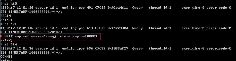3、假設(shè)現(xiàn)在問題來了,我這條update是誤操作,如何進(jìn)行恢復(fù)