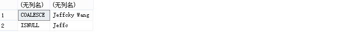 DECLARE @c5 VARCHAR(5); SELECT 'COALESCE', COALESCE(@c5, 'Jeffcky Wang') UNION ALL SELECT 'ISNULL', ISNULL(@c5, 'Jeffcky Wang');