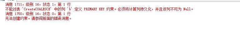 接下來我們看看二者最大的不同,我們通過計(jì)算列并且在其上面創(chuàng)建主鍵或者非空約束,看看ISNULL和COALESCE的區(qū)別