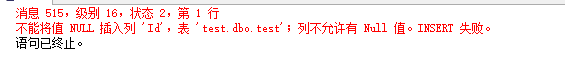 此時我們對Id添加一個NULL試試看,結(jié)果可以插入還是不可以呢?