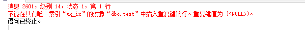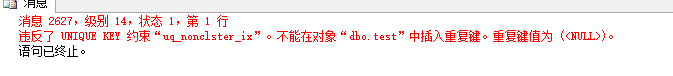 當(dāng)我們插入數(shù)據(jù)時,唯一索引返回錯誤代碼為2601