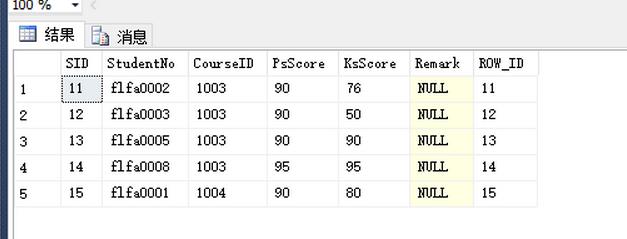 select * from (select *,ROW_NUMBER() over(order by [SID]) ROW_ID from [StuDB].[dbo].[ScoreInfo]) t where t.[SID] between (5*(3-1)+1) and 5*3
