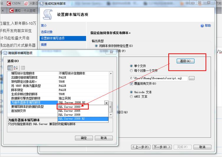 話說本來我的電腦有個2000的數(shù)據庫,去年我在那個電腦上新裝了一個2005的數(shù)據庫。前不久我買了臺新電腦,裝了數(shù)據庫2008 將在舊電腦上的一個數(shù)據庫附加到了2008上面。做完項目,將數(shù)據庫傳到空間時,空間數(shù)據庫是2000的,報錯說我的數(shù)據庫是2005的 現(xiàn)在我想把我的數(shù)據庫轉成2000,但是我的2008數(shù)據庫的腳本向導里面沒有轉成2000這個選項,2005的版本又附加不上去。