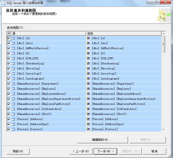 步驟4:按照我文章中的那個步驟的截圖打開導入導出工具,然后一直點下去,注意在【目標服務器】那里填寫2000的那個實例名,然后到這個地方全選,再點下一步。