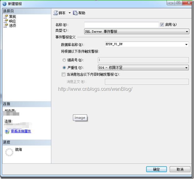 可以選擇警報類型,針對數(shù)據(jù)庫和嚴重性中選擇監(jiān)測內(nèi)容比如權(quán)限不足,當發(fā)生權(quán)限不足時報警:
