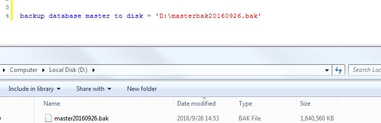 如果有master文件本身沒有損壞,有master的備份,只需要步驟4還原master即可