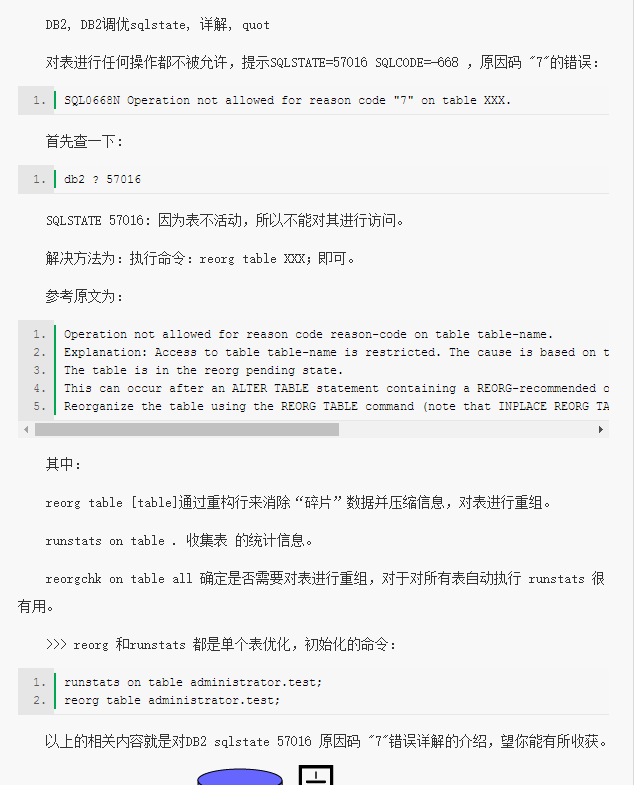 詳解DB2 sqlstate 57016 SQLCODE=-668 原因碼 "7"錯(cuò)誤的快速解決辦法