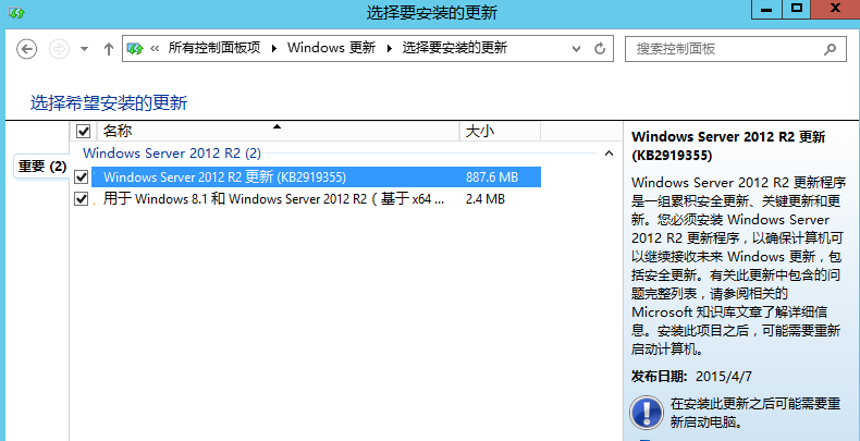 打開Windows自動更新,讓W(xué)indows自己搜索最新補丁并安裝KB2919355