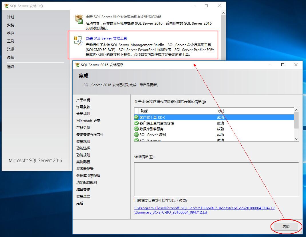 7.數(shù)據(jù)庫安裝完成后,點擊安裝管理工具