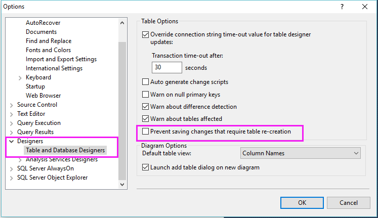 SQL Server阻止保存修改表結(jié)構(gòu)的解決方法