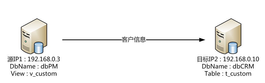 最近有個(gè)需求是要跨庫(kù)進(jìn)行數(shù)據(jù)同步,兩個(gè)數(shù)據(jù)庫(kù)分布在兩臺(tái)物理計(jì)算機(jī)上,自動(dòng)定期同步可以通過(guò)SQL Server代理作業(yè)來(lái)實(shí)現(xiàn),但是前提是需要編寫(xiě)一個(gè)存儲(chǔ)過(guò)程來(lái)實(shí)現(xiàn)同步邏輯處理。這里的存儲(chǔ)過(guò)程用的不是opendatasource,而是用的鏈接服務(wù)器來(lái)實(shí)現(xiàn)的。存儲(chǔ)過(guò)程創(chuàng)建在IP1:192.168.0.3服務(wù)器上,需要將視圖v_custom的客戶信息同步到IP2:192.168.0.10服務(wù)器上的t_custom表中。邏輯是如果不存在則插入,存在則更新字段。
