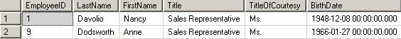 如果我們再把第三行的@LastName變量賦值為'd'試試,結果會把所有FirstName字段包含'n'并且LastName字段包含'd'的記錄查出來,如下圖: